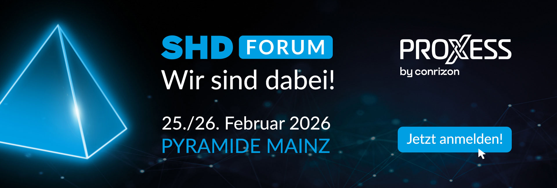 Pyramide Mainz Nikolaus‑Kopernikus‑Straße 17, MainzSHD Forum 2026 – Wir sind als Gold-Sponsor dabei! Vom 25.–26. Februar 2026 findet das SHD Forum in der Pyramide Mainz statt. Unter dem Motto "Discover. Innovate. Network." bietet [...]