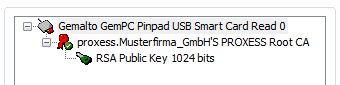 Select the certificate and enter the PIN of the inserted smartcard. (At delivery, this is: 1234).