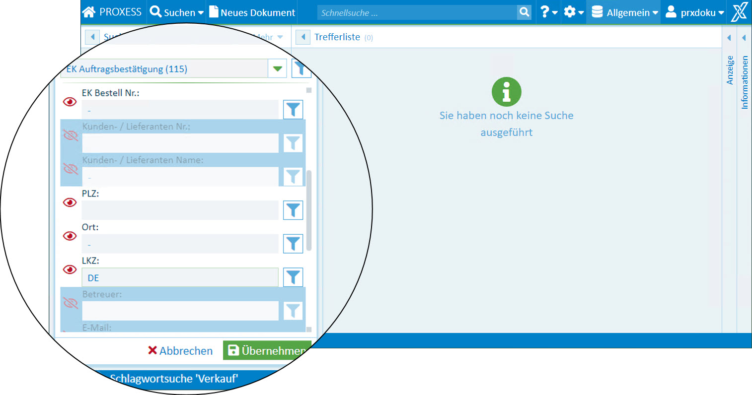 Als Anwender, können Sie sich persönliche Suchmasken einrichten, benutzen und auch als Vorlage speichern.