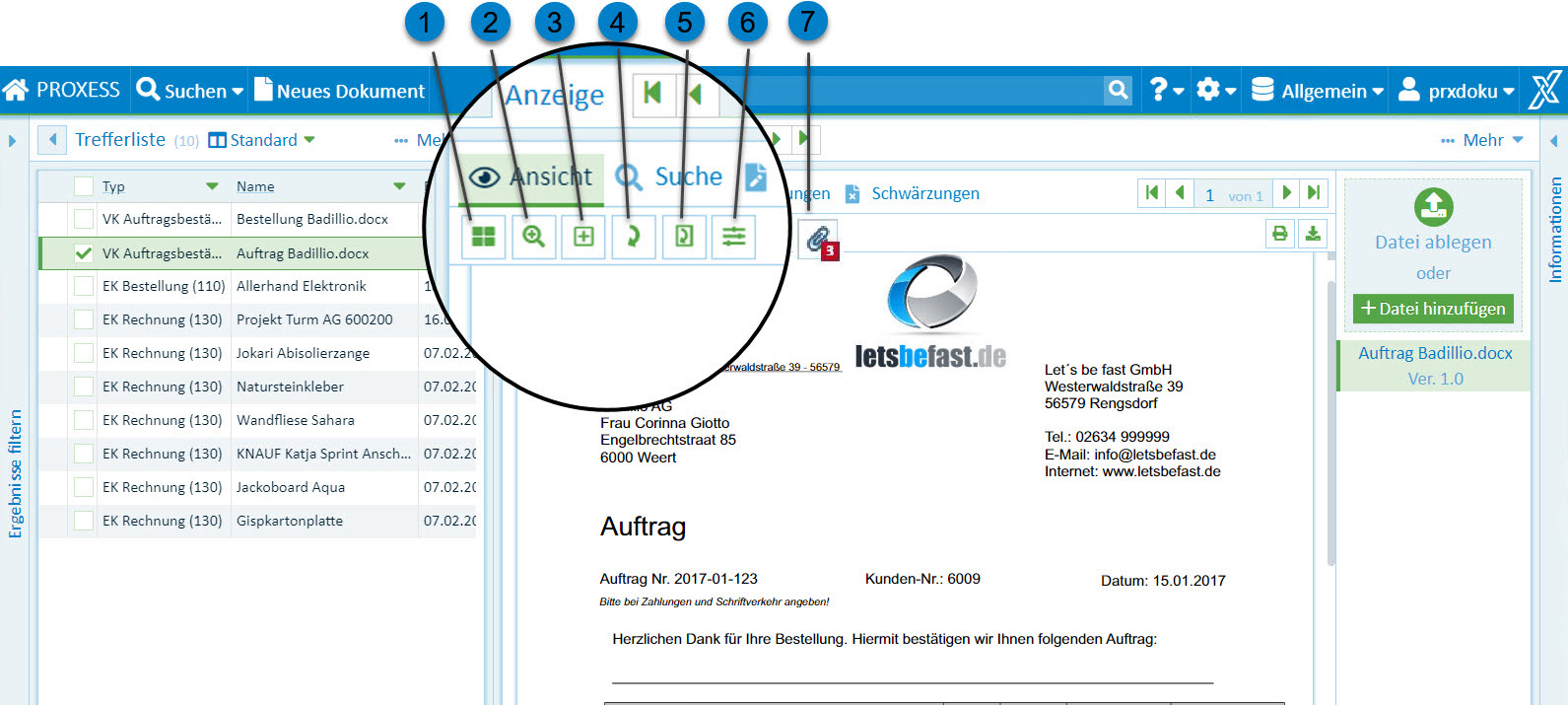 Dokumente werden in PROXESS Web Client in einem integrierten Viewer angezeigt. So sind Sie unabhängig vom Originalprogramm, mit dem die Datei ursprünglich erstellt wurde.