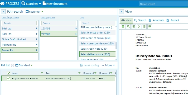 The path search is a good way to search if you do not know an exact search term. The path search takes you through the existing documents. In this process, you can continue to narrow down the hitlist at every level.